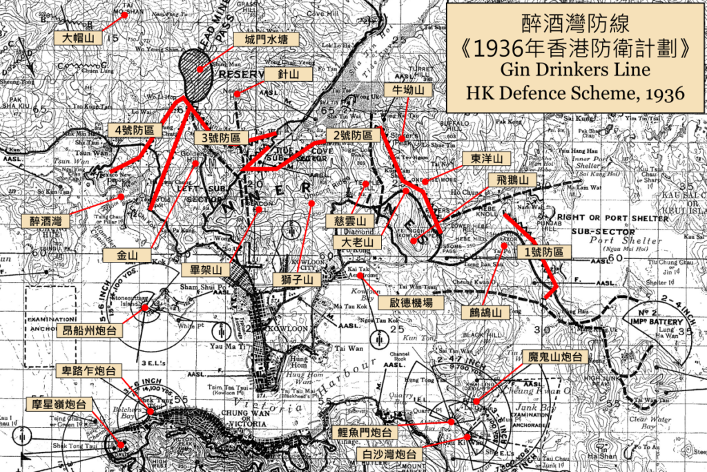 Following the bombing of Kai Tak Airport, Japanese ground forces advanced south from Guangdong into the New Territories. British units conducted a fighting withdrawal, destroying infrastructure to slow the Japanese advance. The British plan relied on the Gin Drinkers’ Line, a defensive system constructed between 1936 and 1940 across the southern New Territories. The line consisted of pillboxes, trenches, and fortified positions and was intended to delay an enemy advance toward Kowloon and Hong Kong Island.